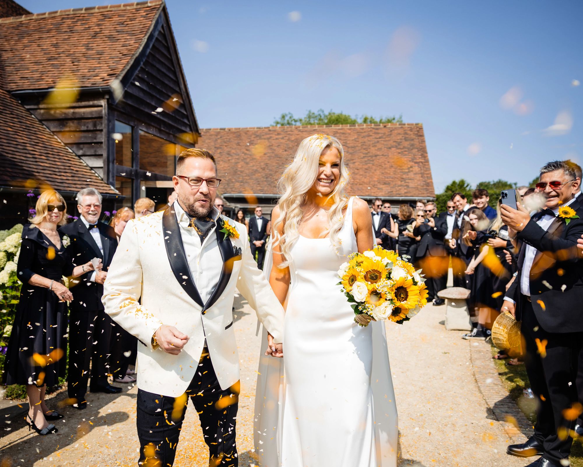 Nick & Sammie’s wedding at Rackleys, The Chilterns was sunny, personal, joyful and completely them. From the bee‑inspired styling to the endless entertainment and family‑focused moments, it was a celebration built around connection and fun & a wedding I feel incredibly lucky to have photographed.
